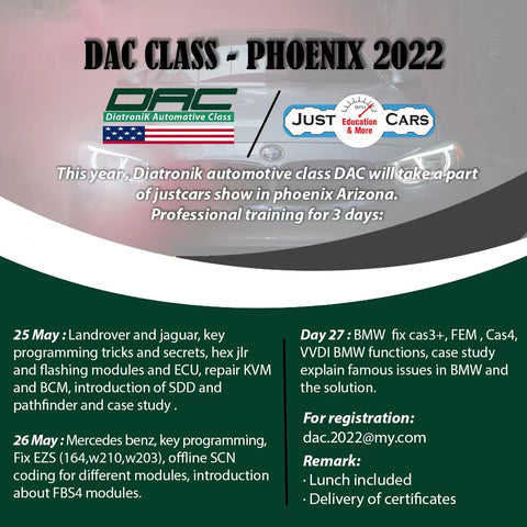 This year Diatronik automotive class will take part of justcars show in phoenix Arizona. Professional training for 3 days.